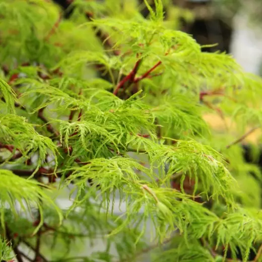 Особенности растения: имеет тонкие, изящные, глубокие разрезы на листьях, которые придают ему эффектный внешний вид; осенью окрашивается в яркие оттенки красного и оранжевого, что создает дополнительный декоративный эффект.
