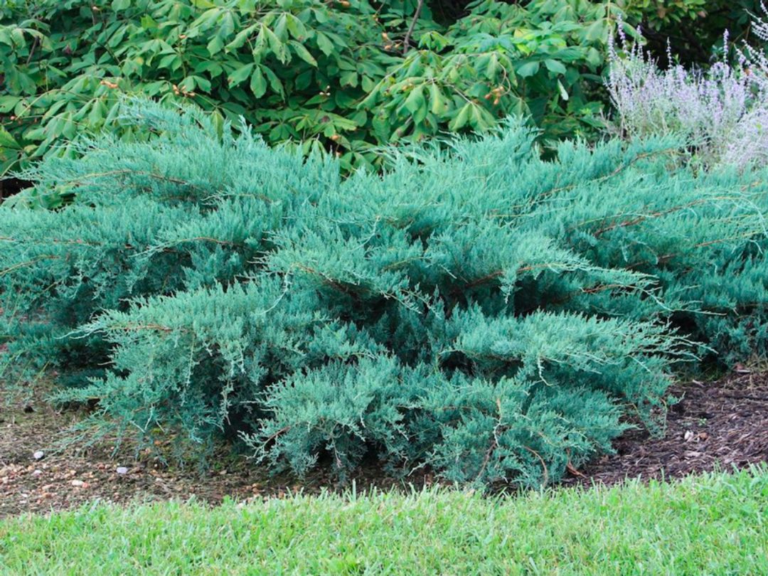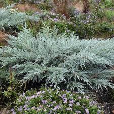 Особенности растения: раскидистый кустарник с горизонтальными приподнятыми ветвями и свисающими концами, чешуйчатая серебристо-голубая хвоя, декоративные фиолетовые шишкоягоды. Средне растущий, устойчив к морозам, ветрам, болезням и городским условиям, не требует обрезки.