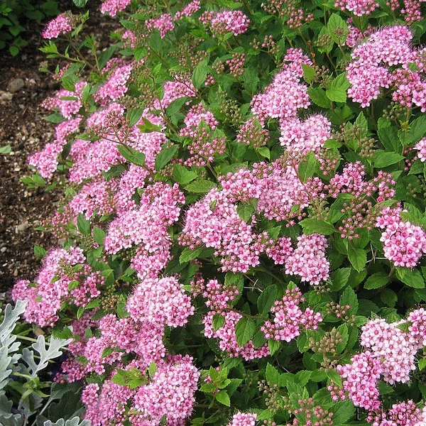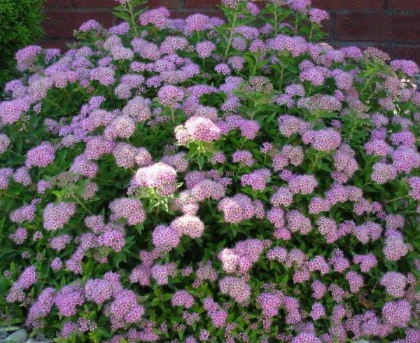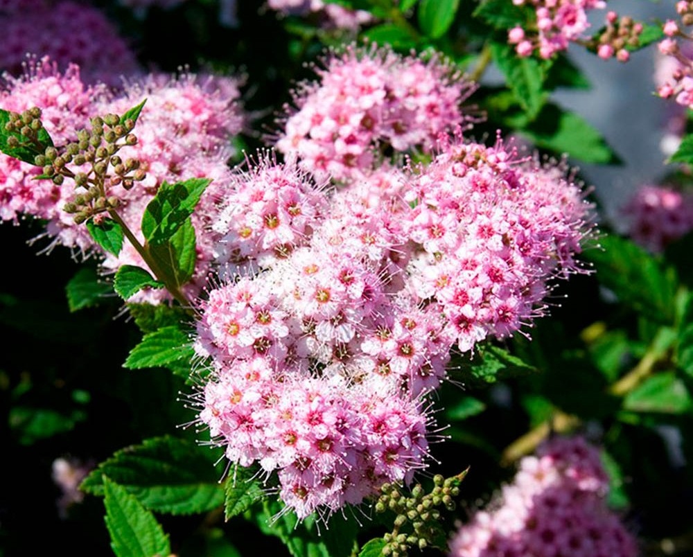 Особенности растения: цветет с июня по сентябрь, требует обрезки для поддержания формы и густоты. Цветы розовые, собраны в щитковидные соцветия. Листва весной имеет яркий зеленый цвет, который осенью может приобретать желтые и красные оттенки.