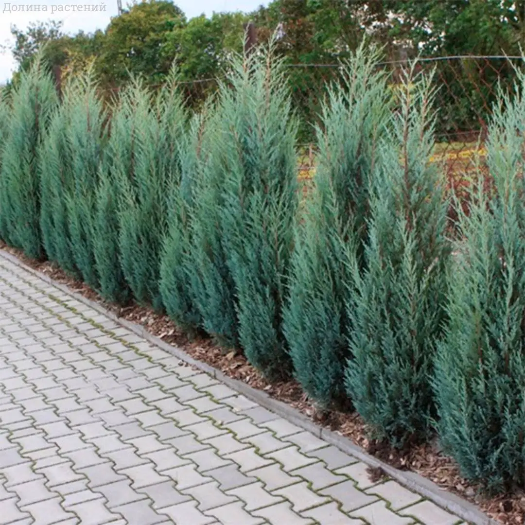 Особенности растения: пирамидальная или узкоконусовидная крона с плотной серебристо-голубой чешуйчатой хвоей, интенсивнее зимой. Быстрорастущий (прирост 10–20 см в год), устойчив к морозам, ветрам, болезням и городским условиям. Не колючая хвоя декоративна круглый год.